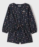 Combishort manches longues à motif fleuri fille - LuluCastagnette marine