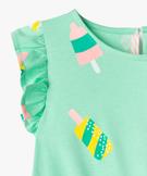 Le combishort, c'est le must-have du dressing d'été. Une seule pièce, facile à enfiler, super confortable, coloré et hop ! Le tour est joué. Les fillettes apprécieront les volants aux épaules, le côté cool et les imprimés de ce modèle en jersey 100% coton. Un combishort fille sans manches à taille élastiquée, idéal pour une tenue girly sans renoncer à leur aisance et leur liberté de mouvements. Le col rond de la combi courte s'élargit grâce à un bouton et une fente en haut de dos, pour un habillage en un clin d'œil.