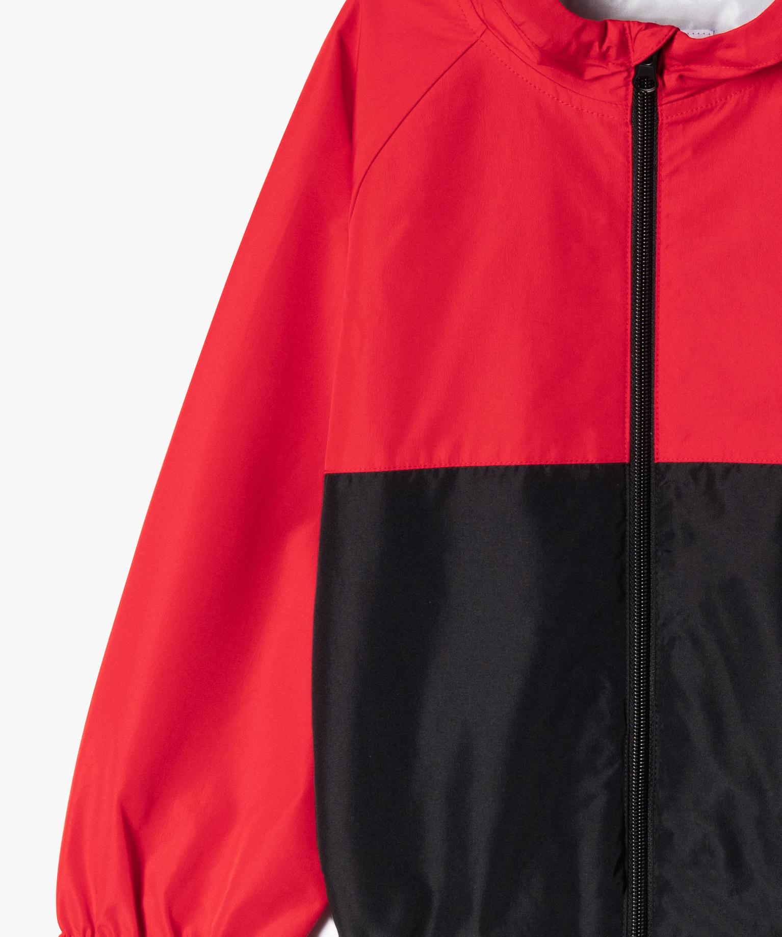 Coupe-vent à capuche déperlant bicolore pois garçon rouge