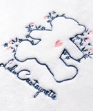Finition biais jersey assorti. Angles arrondis. Ourson Lulu brodé dans un angle côté