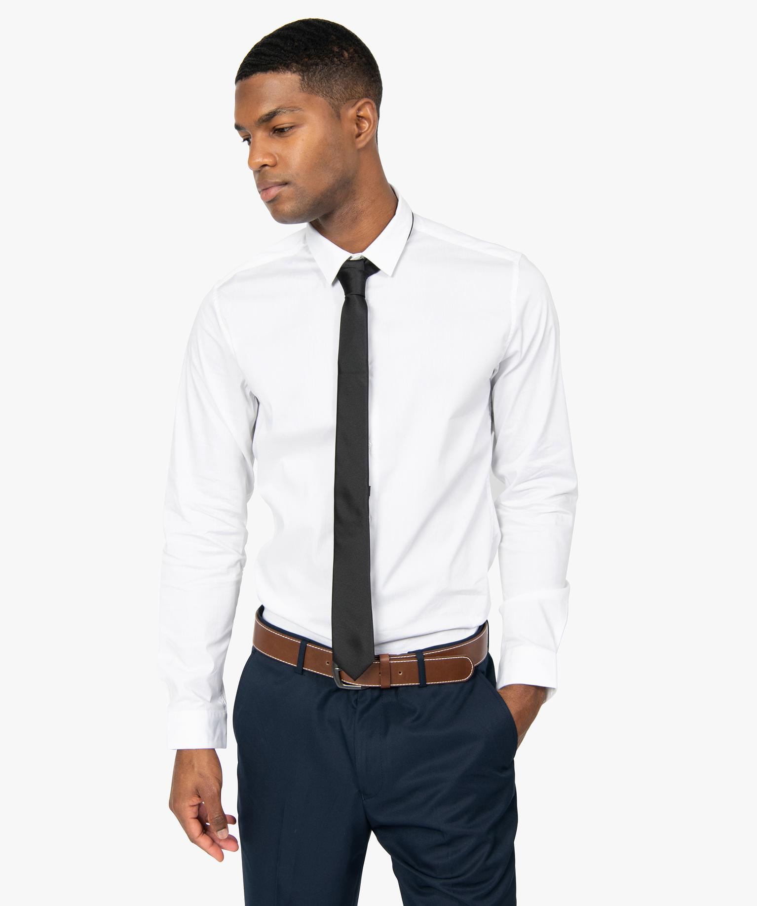 Associez cette cravatte unie pour homme à toutes vos chemises pour un look très chic. La cravate unie fine est en plein dans la tendance, elle se porte aussi bien avec un costume qu'une tenue jean, chemise. Largeur bas de cravate : 5,5 cm