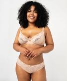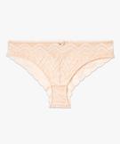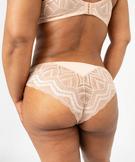 Une très séduisante culotte femme grande taille (du 46/48 au 54/56). La culotte est fabriquée dans une jolie dentelle féminine et moderne, subtilement irisée et transparente. Sa dentelle extensible et sa taille élastique procurent une sensation de confort optimale. La ceinture est ornée d'une finition dentelée et d'un petit nœud assorti. Dotée de finitions sans coutures au dos, cette culotte femme se fera particulièrement discrète sous vos vêtements. Associez-la au soutien-gorge assorti pour composer un ensemble harmonieux.