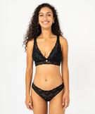 Cette culotte en dentelle, rehaussée de détails scintillants, allie confort et élégance avec brio. Sa dentelle extensible procure une sensation de douceur incomparable, tout en offrant une subtile transparence qui sublime votre silhouette. La ceinture élastique est délicatement ornée d'une finition dentelée et d'un petit nœud assorti, ajoutant une touche de charme. Grâce à ses finitions sans coutures au dos, cette culotte femme passera quasiment inaperçue sous vos vêtements. Associez-la au soutien-gorge assorti pour créer un ensemble romantique et élégant.