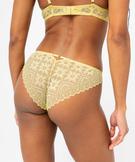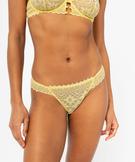 Faites pétiller votre collection de sous-vêtements avec cette jolie culotte au coloris acidulé ! Une culotte en dentelle fleurie transparente, élégante et sexy. La culotte femme présente des finitions sans coutures sur les fesses et un ajour avec ruban en satin et petit anneau métallique dans le bas du dos. Le fond du slip est doublé de coton pour votre confort. Pour un max de raffinement, complétez la parure avec le soutien-gorge assorti.