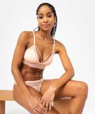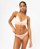 Faites pétiller votre collection de sous-vêtements avec cette jolie culotte au coloris acidulé ! Une culotte en dentelle fleurie transparente, élégante et sexy. La culotte femme présente des finitions sans coutures sur les fesses et un ajour avec ruban en satin et petit anneau métallique dans le bas du dos. Le fond du slip est doublé de coton pour votre confort. Pour un max de raffinement, complétez la parure avec le soutien-gorge assorti.