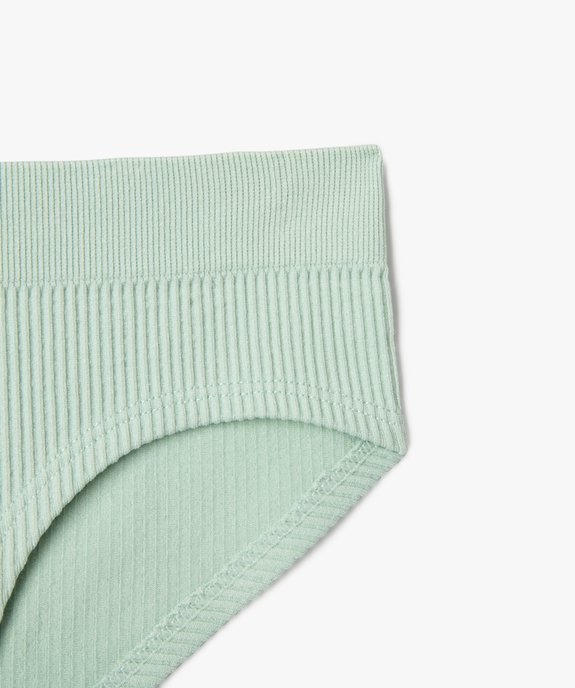 Une culotte pour fille jolie et confortable. Confectionnée dans une maille côtelée extensible avec une large ceinture élastiquée, elle épouse parfaitement les formes. Une culotte à coutures plates discrètes sous tous les vêtements. Vendue en lot de 2.
