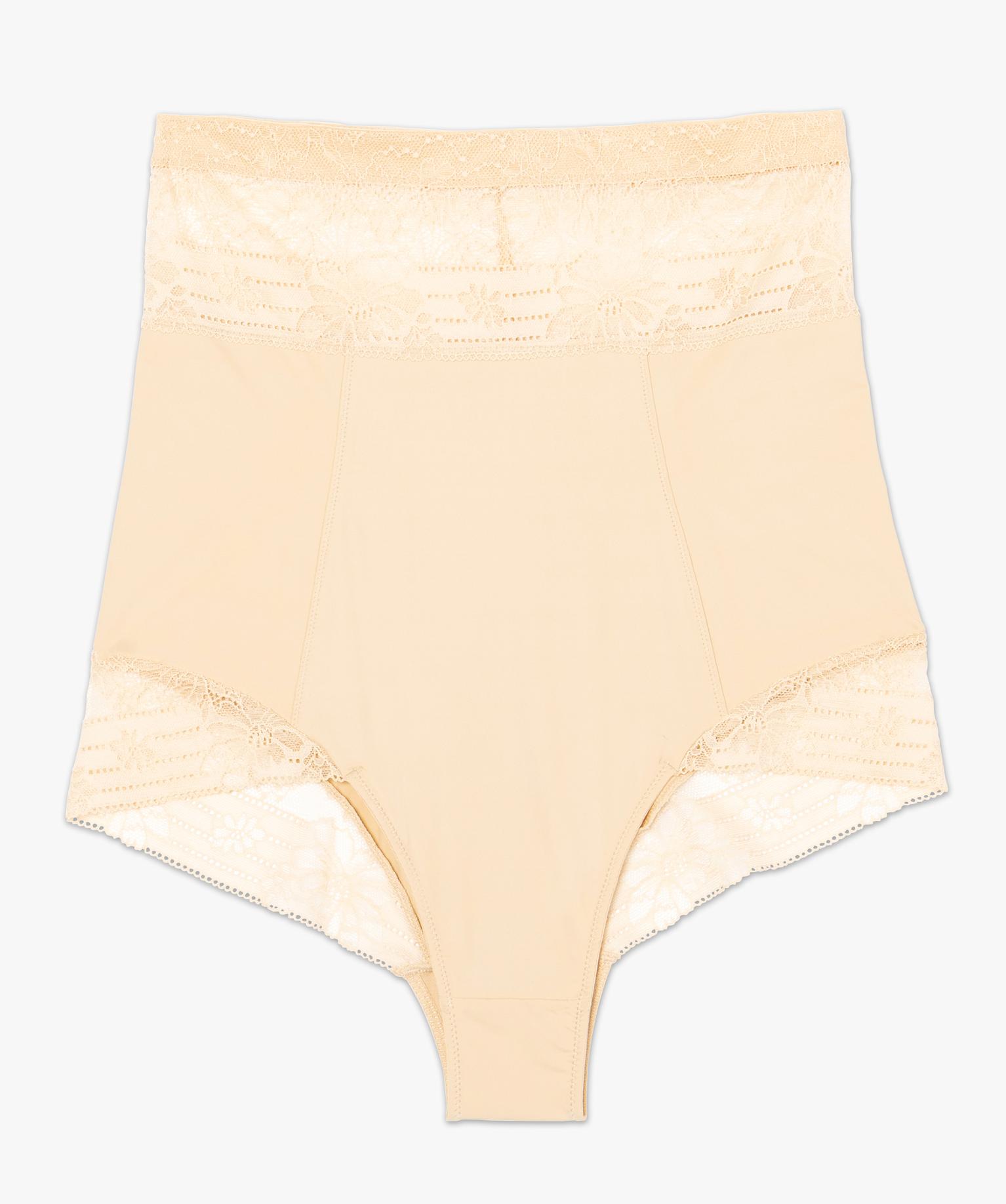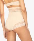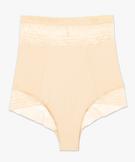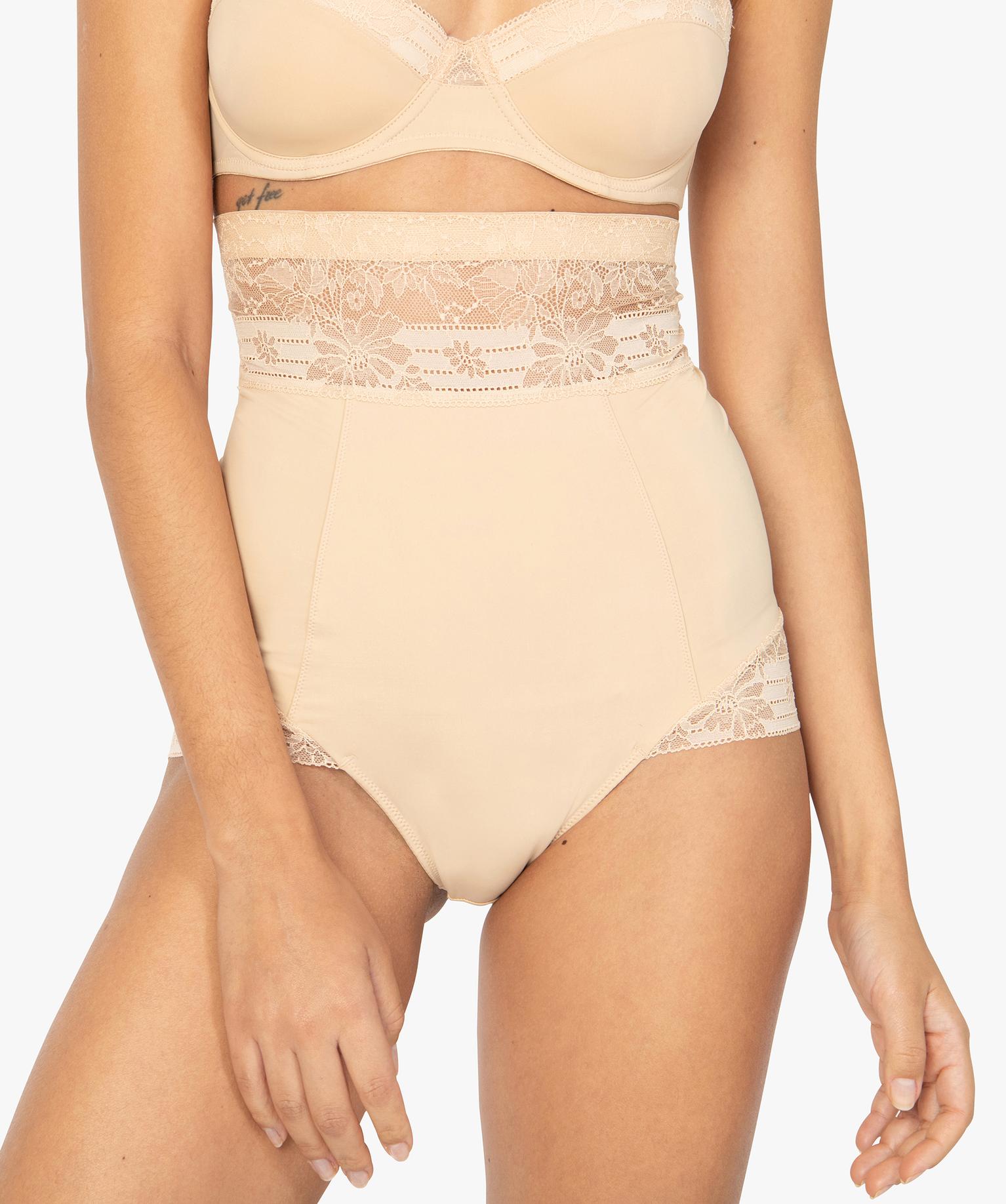 Culotte femme gainante taille très haute en microfibre et dentelle beige
