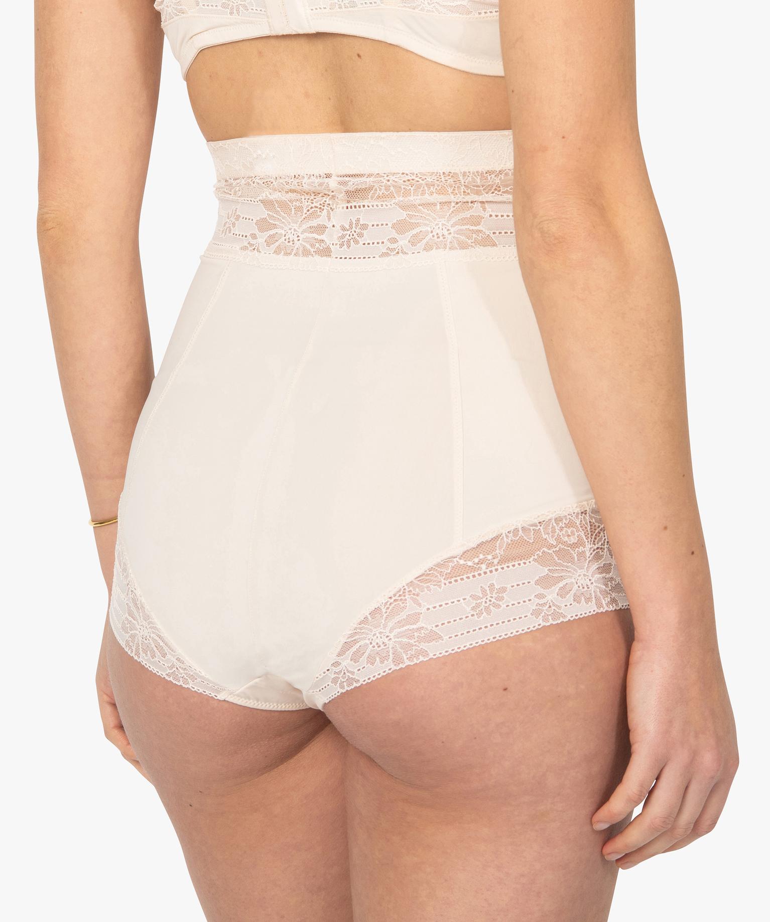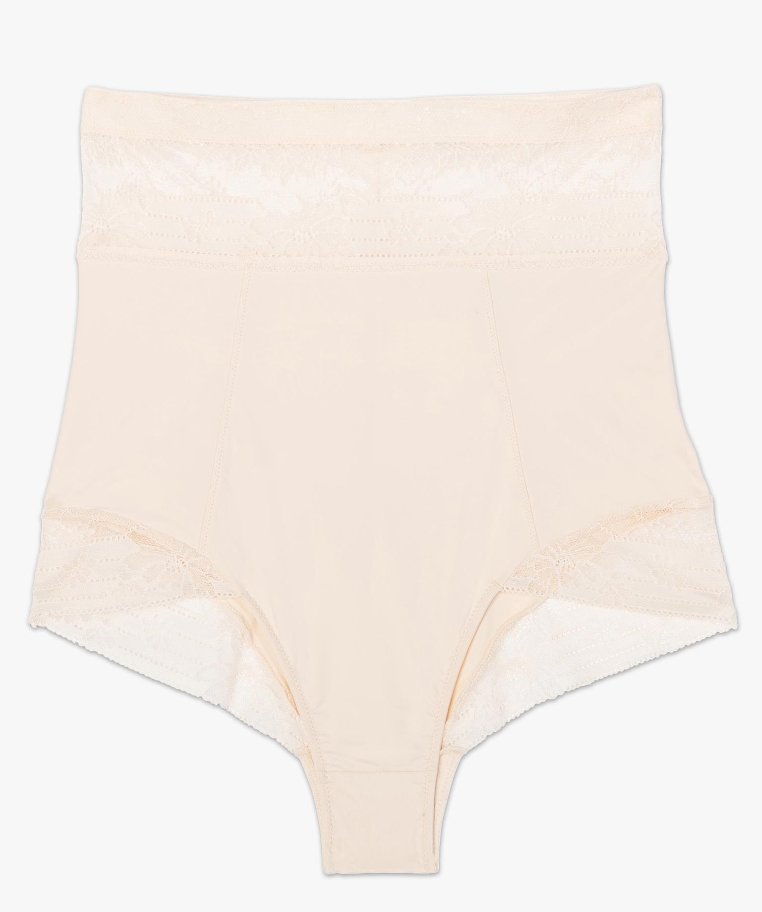 Culotte femme gainante taille très haute en microfibre et dentelle blanc chine