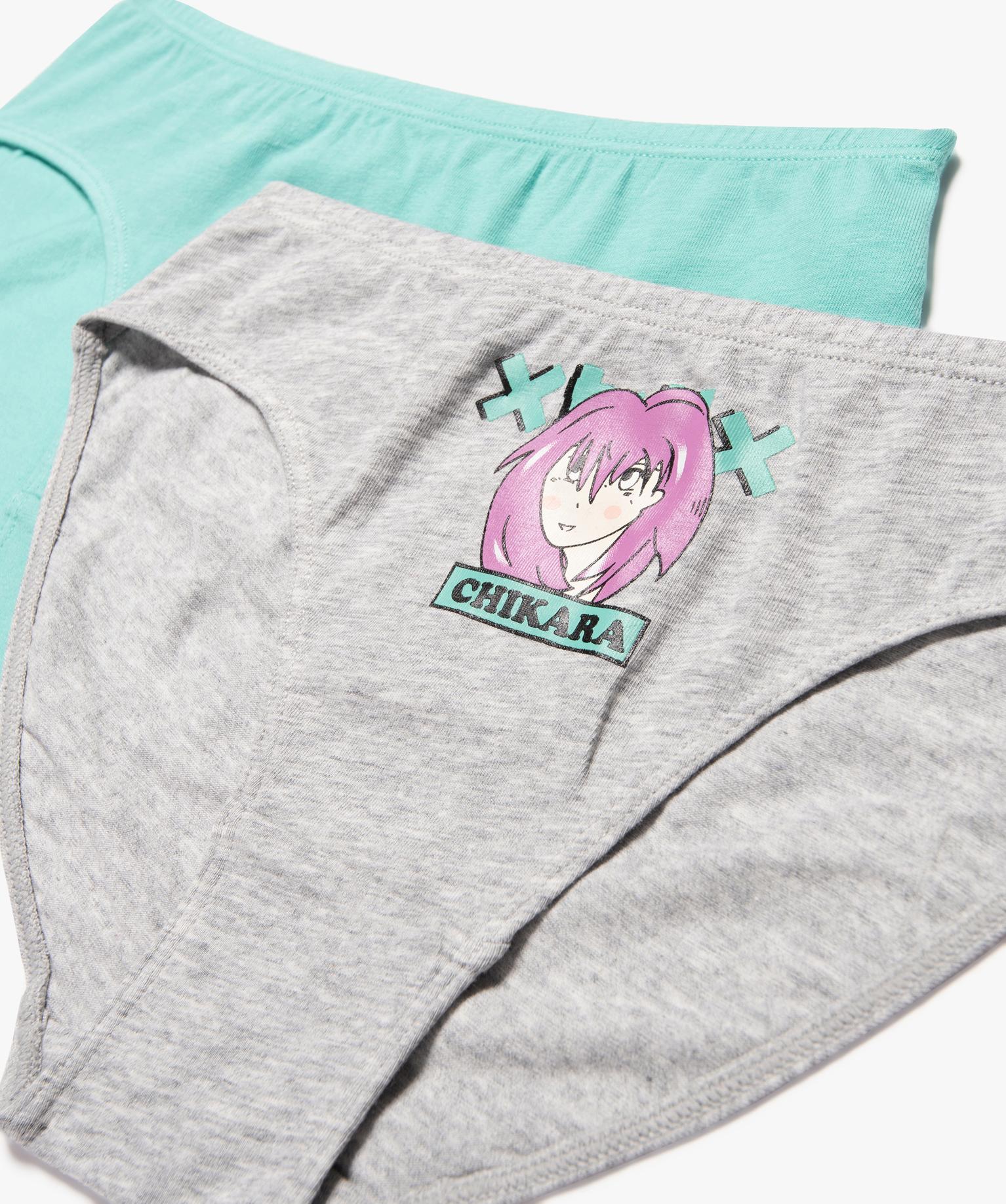 Les fans de mangas seront ravis de ce lot de sous-vêtements pour fille ! Ces culottes sont ultra confortables. Elles sont déclinées dans des couleurs pétillantes pour apporter du dynamisme dans la garde-robe des enfants. Le lot de slips pour fille se compose d'un modèle uni et de deux culottes ornées d'un grand motif manga à l'avant, le tout avec une ceinture élastique très confortable.