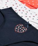 L’incontournable culotte se pare de motifs cerises pour ajouter une touche gourmande dans le dressing des filles. Vendus en lot de 3, ces slips fille sont confectionnés en coton biologique doux pour la peau, avec une pointe d’élasthanne pour accompagner tous les mouvements sans jamais gêner. Ils sont dotés d’une ceinture élastique avec finition festonnée et d’un petit noeud satiné ton sur ton. Un lot de sous-vêtements enfant à glisser sans attendre dans le dressing des filles.