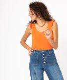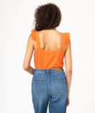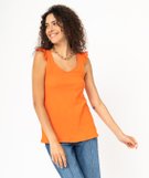 Ce débardeur femme est parfait pour des looks élégants quand la température est au plus haut ! Ses bretelles larges et décorées d'un volant en broderie anglaise sont pensées de manière à recouvrir les bretelles d'un soutien-gorge. Le profond décolleté en V devant et la matière crêpe froissée mettent en valeur votre silhouette. Le top à bretelles possède une base arrondie pour pouvoir être porté rentré ou à l'extérieur d'une jupe ou d'un pantalon.