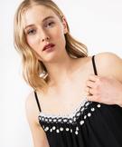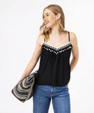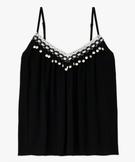 Débardeur à fines bretelles avec pampilles en perles femme noir