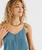 Vous allez succomber à ce joli débardeur femme à fines bretelles. Un modèle à la fois confortable et élégant composé d’une maille extensible au dos et d’une matière au toucher soyeux sur l’avant. Le décolleté affiche de délicates finitions dentelées et des petits boutons ton sur ton avec boutonnière élastique. Un top fluide à porter avec un jean ou comme haut de soirée avec un ensemble de costume pantalon + veste.