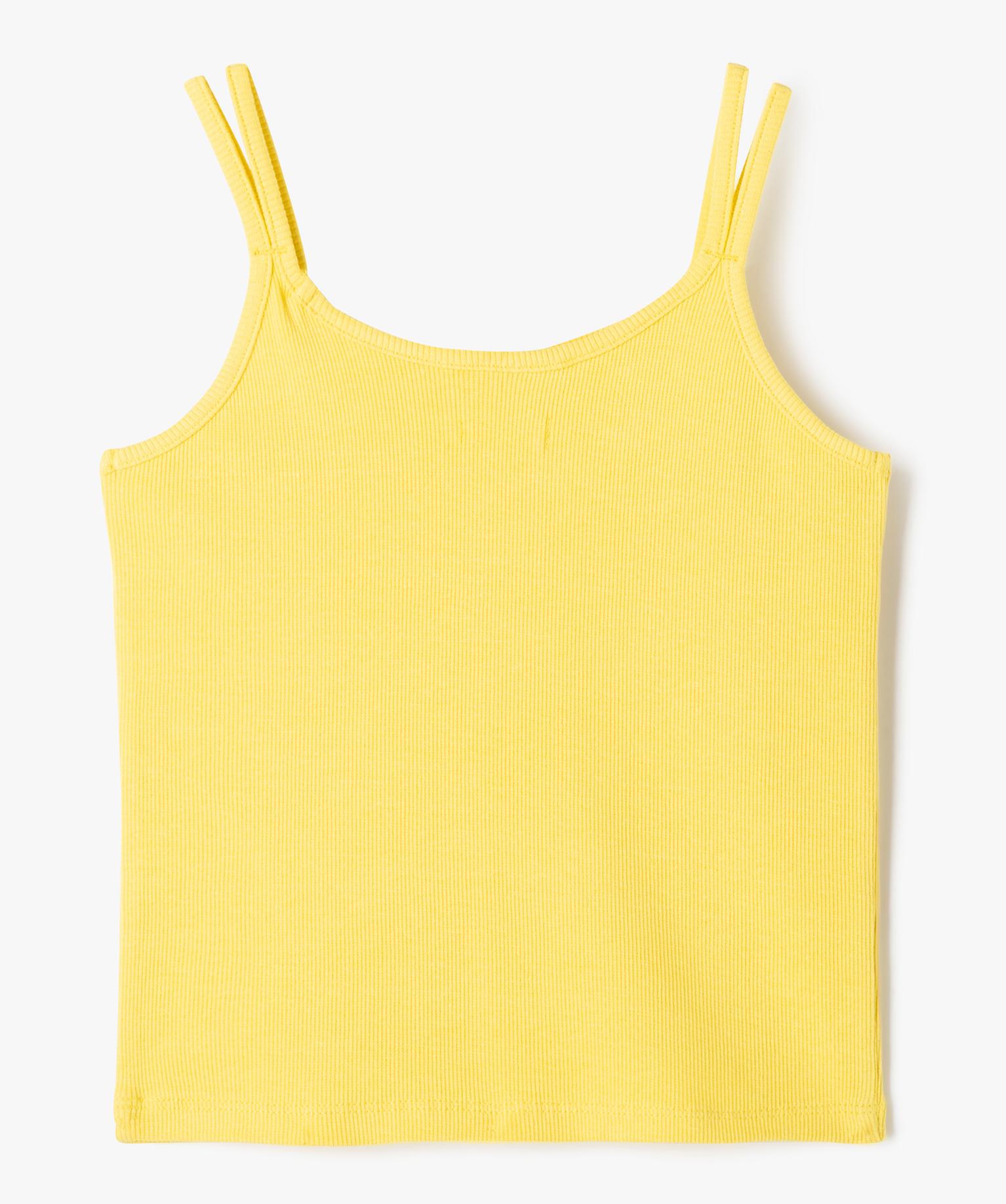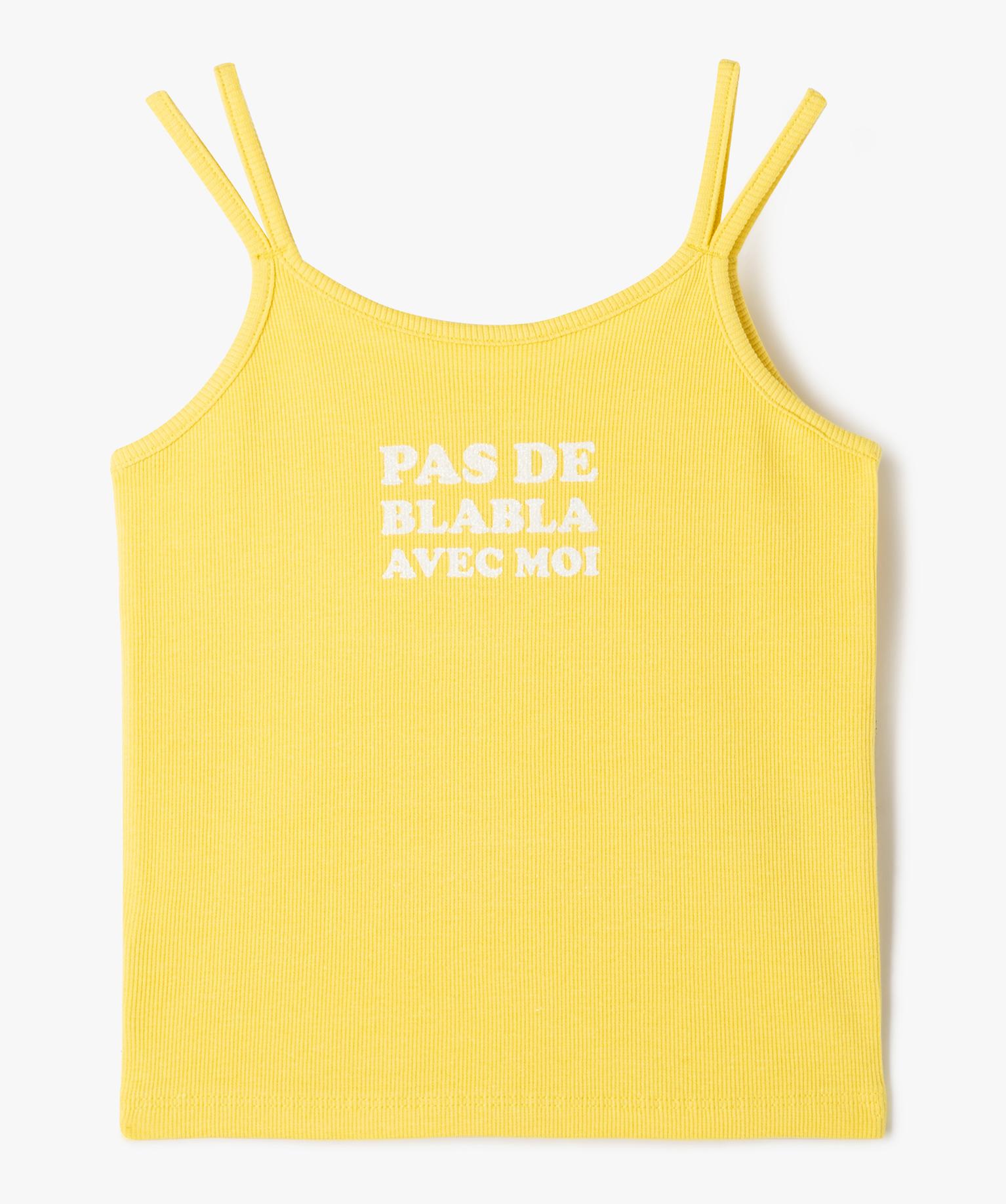 Débardeur à fines bretelles en maille côtelée avec message fille jaune