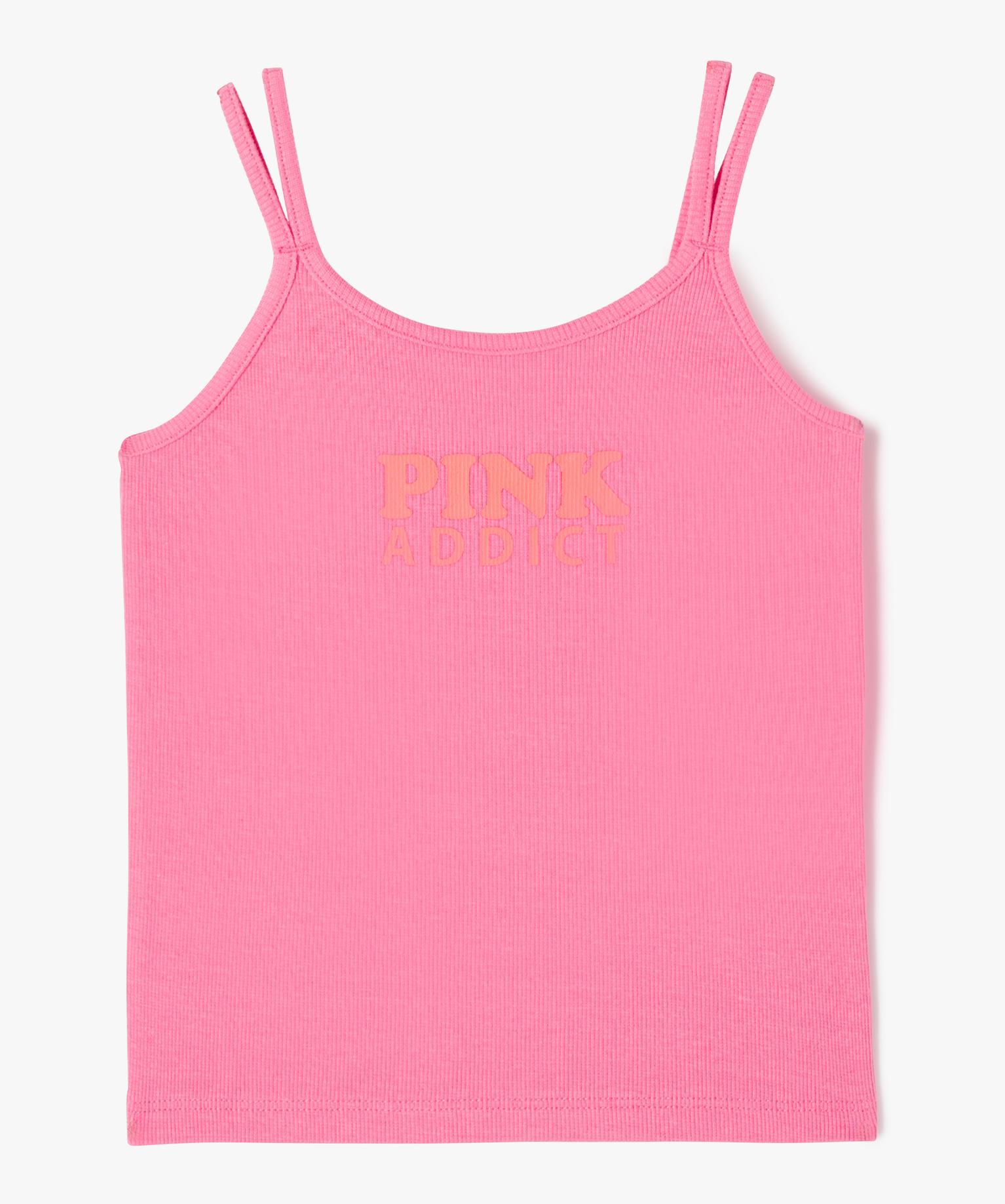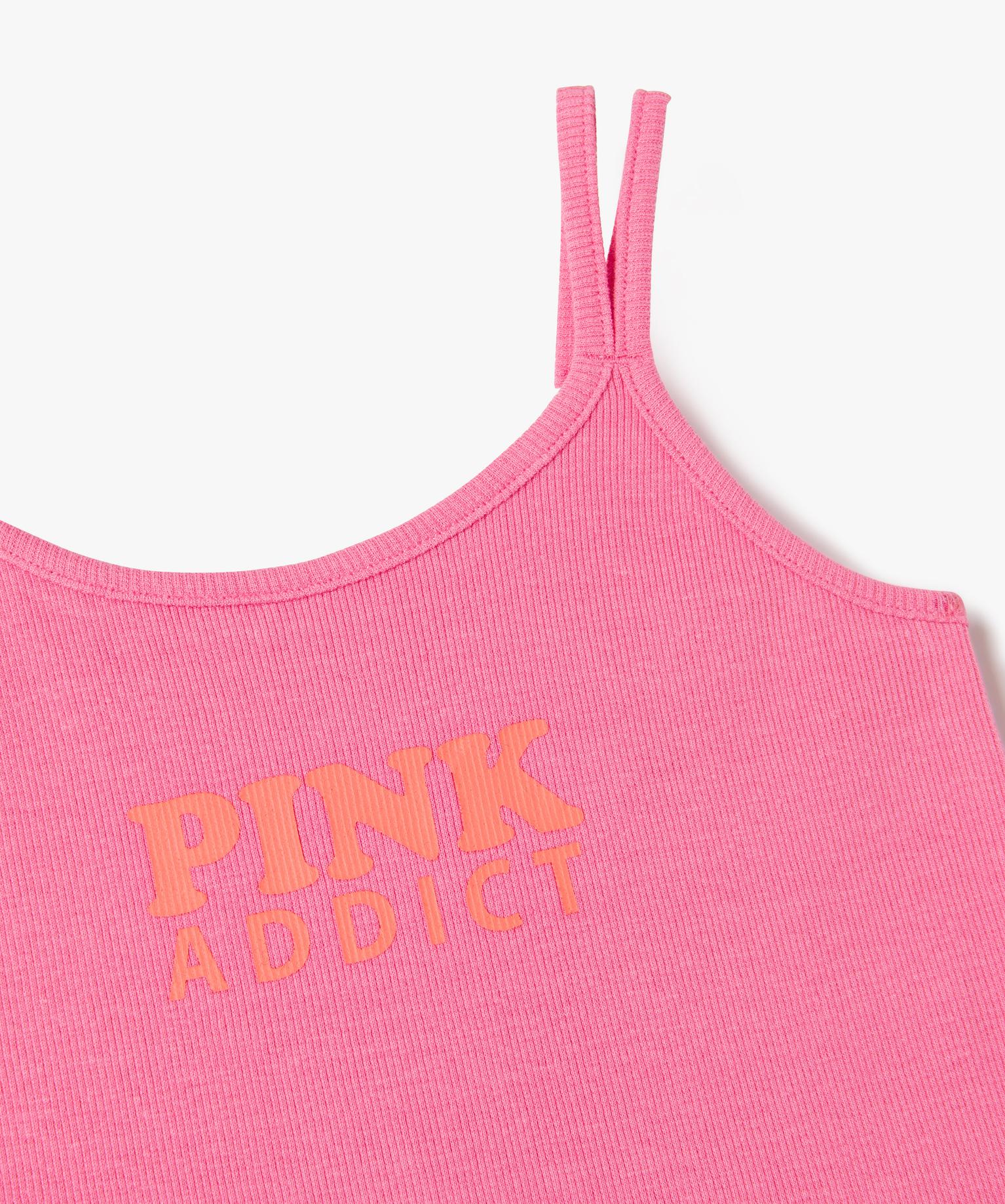 Débardeur à fines bretelles en maille côtelée avec message fille rose