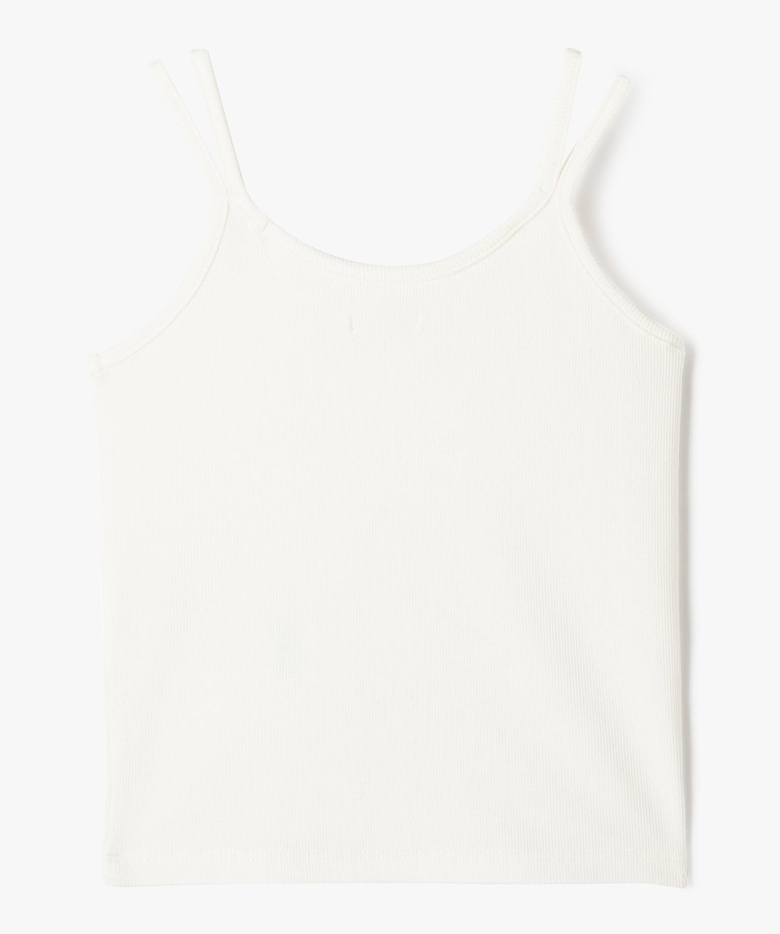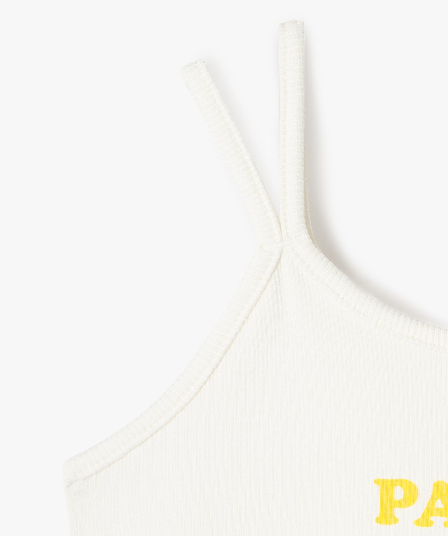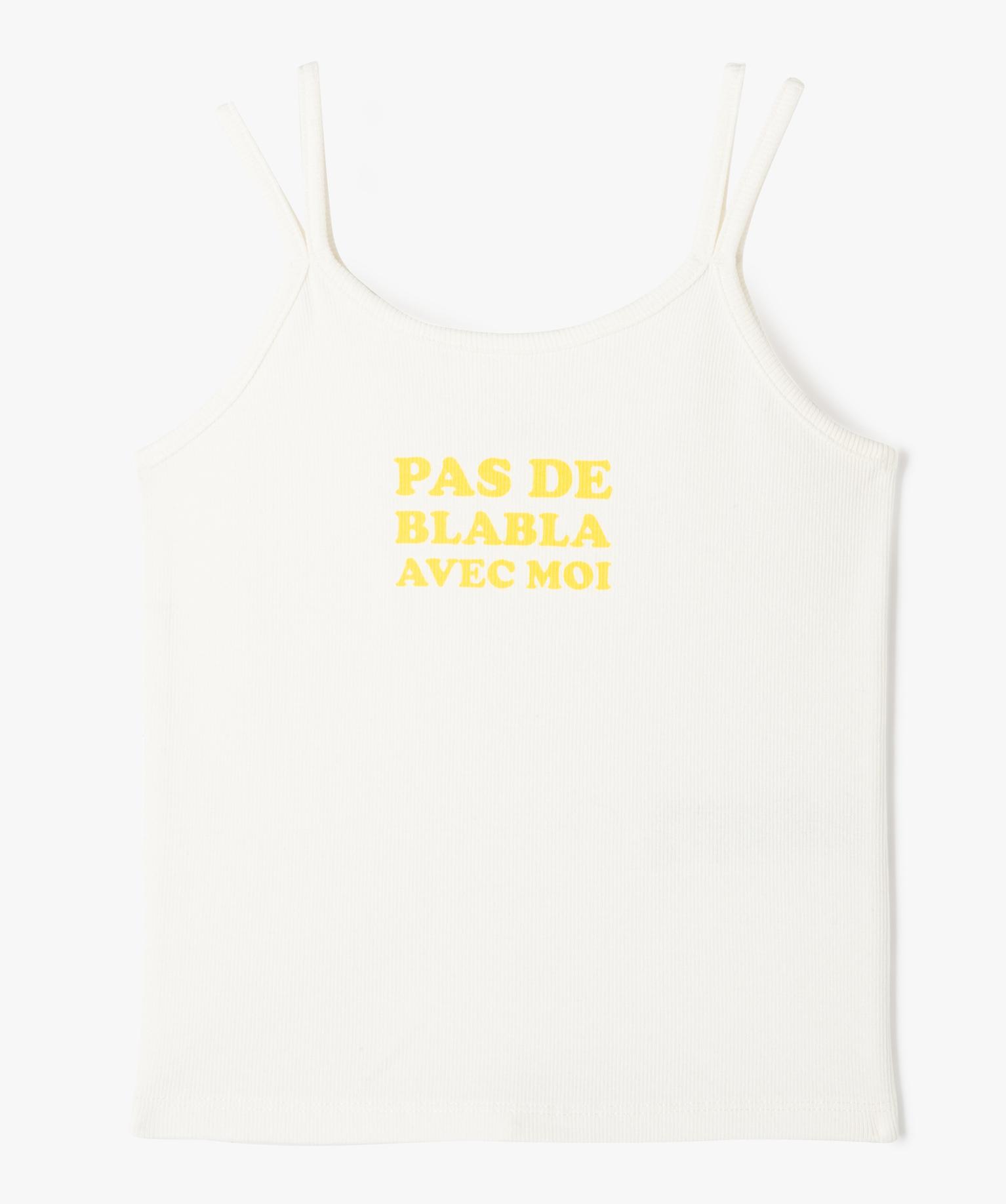 Débardeur à fines bretelles en maille côtelée avec message fille blanc chine