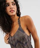 Ce débardeur à fines bretelles confectionné dans une matière plissée métallisée aux reflets multicolores ajoutera une touche de lumière dans le vestiaire féminin. Spécialement conçu pour les fêtes et les grandes occasions, ce débardeur femme à col V sublime les épaules et le décolleté grâce à de fines bretelles entrecroisées dans le dos. Un haut de soirée fluide, très agréable à porter, à associer à un ensemble de costume pantalon + veste. Dos élastiqué.