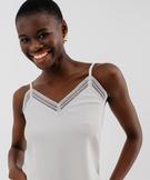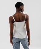 Débardeur à fines bretelles en maille texturée et dentelle femme ecru