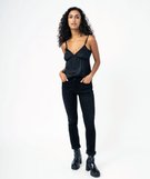 Allure sexy assurée lors de toutes les grandes occasions grâce à ce débardeur en satin ! Doté de fines bretelles fixes et de bretelles métalliques amovibles, il offre un joli jeu d’entrelacs qui sublime le décolleté. Un débardeur femme avec décolleté en V et fronces sous la poitrine à porter avec un pantalon de smoking et des escarpins à talon. Un haut de soirée parfait pour les fêtes de fin d’année !