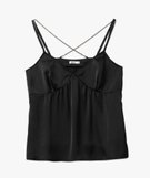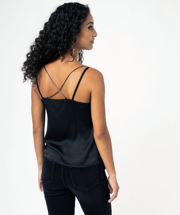 Débardeur à fines bretelles en satin femme noir