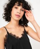 À mi-chemin entre le débardeur et le caraco, ce haut à bretelles est particulièrement élégant et féminin. Vous apprécierez la délicatesse de sa finition dentelle et de ses fines bretelles ajustables. Vous craquerez également pour son jeu de matières : un satin de viscose vaporeux devant, un jersey stretch très confortable au dos, et toujours : de la douceur ! Un débardeur femme idéal sous un blazer ou rentré dans la ceinture d'une jupe taille haute. Encolure V devant, droite au dos. Coupe droite assez large.