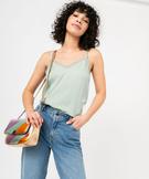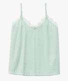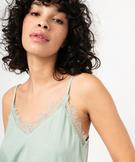 À mi-chemin entre le débardeur et le caraco, ce haut à bretelles est particulièrement élégant et féminin. Vous apprécierez la délicatesse de sa finition dentelle et de ses fines bretelles ajustables. Vous craquerez également pour son jeu de matières : un satin de viscose vaporeux devant, un jersey stretch très confortable au dos, et toujours : de la douceur ! Un débardeur femme idéal sous un blazer ou rentré dans la ceinture d'une jupe taille haute. Encolure V devant, droite au dos. Coupe droite assez large.