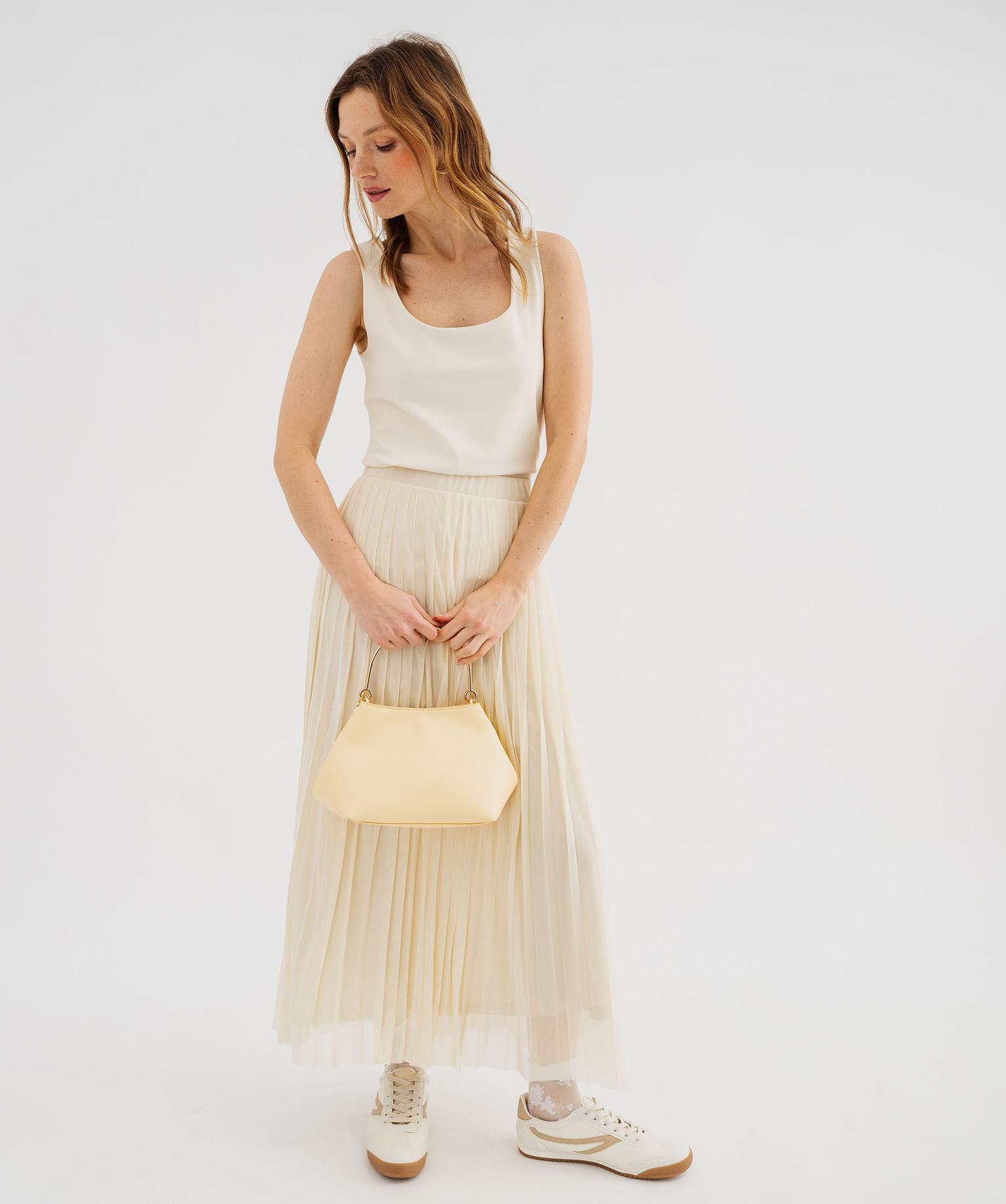 Débardeur à larges bretelles et col carré en microfibre femme ecru