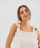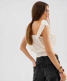 Ce débardeur joue la carte du romantisme ! Il est fabriqué dans une maille texturée qui apporte du relief. La base smockée souligne naturellement la taille. Un délicat volant brodé encadre le devant, habille les bretelles et se prolonge dans le dos. L’encolure carrée, devant et dos, structure l’ensemble avec élégance. La coupe du débardeur femme s’adapte sans contraindre. L’équilibre entre féminité et décontraction est parfait. Idéal pour les beaux jours ou sous une veste légère. Une pièce pleine de charme, facile à réinventer au quotidien.