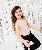 Pour permettre aux fillettes de briller lors des grandes occasions, optez pour ce joli débardeur asymétrique avec une seule bretelle. Un crop top confectionné dans une maille fine et extensible, parsemé de plumetis scintillants à marier avec un pantalon taille haute et des derbies ou avec une jupe à volants et des ballerines. Ce débardeur fille se distingue par son look scintillant, mais aussi par son ouverture goutte sur sa bretelles ! Finitions biais.