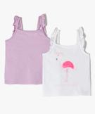 Pour un été léger et coloré, adoptez pour votre fillette cet adorable lot de 2 débardeurs ! Un modèle qui vous charmera à coup sûr avec ses bretelles volantées et sa confection 100% coton facile à vivre. Le lot comprend un débardeur bébé fille uni et un débardeur décoré d'un grand motif estival en sequins translucides haut en couleurs. À porter avec un short en jersey pour un confort absolu.