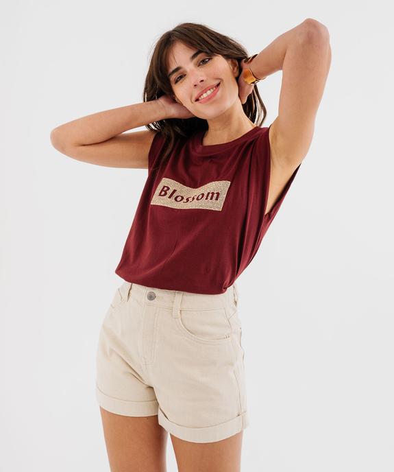 Superbe débardeur pour femme à l'allure moderne ! Un tee-shirt sans manches, confectionné en coton doux et facile à vivre, dans une couleur intense, mise en lumière par une inscription brodée et des petits strass dorés ! Son encolure ronde en bord-côte et ses larges emmanchures lui confèrent une allure rock et casual. Un débardeur à porter en mode cool avec un short en jean et des sandales ou glissé sous un blazer. Ourlets bas de manche rentrés. Dos uni.