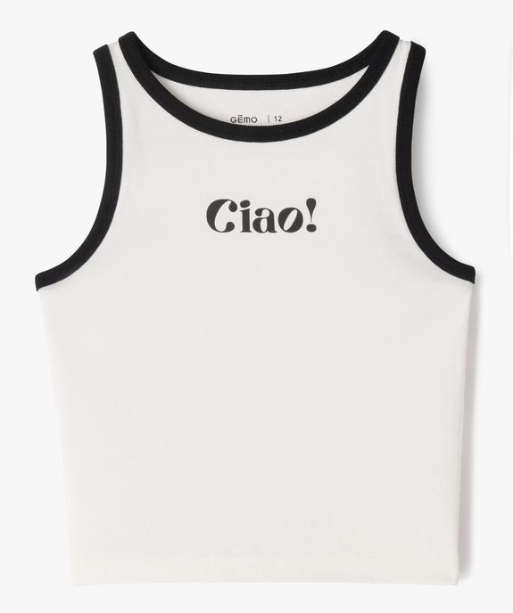 Craquez pour le débardeur court, la pièce tendance du dressing estival des ados ! Confectionné dans un jersey de coton stretch, ce top offre un maximum de confort et un look décontracté. Le débardeur fille se démarque par son inscription sur la poitrine et ses finitions côtelées au coloris contrastant. Il se marie à merveille avec un jogging assorti, un short ou une jupe tube taille haute.