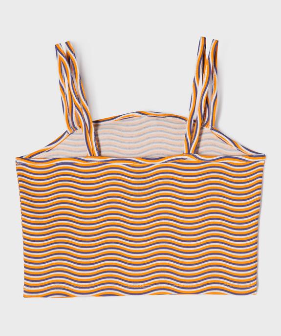 Ce débardeur court à fines bretelles signé Camps United est la pièce idéale pour un look estival frais et tendance. Ses rayures ondulées colorées apportent une touche dynamique et originale, parfaite pour égayer la garde-robe des jeunes fashionistas. Confectionné en coton extensible, ce débardeur fille garantit un confort optimal pendant les journées chaudes. Sa coupe courte et ajustée, associée à des fines bretelles, sublime la silhouette des ados. Un crop top à porter avec un pantalon large et des sandales à brides. Etiquette logo dans le bas.