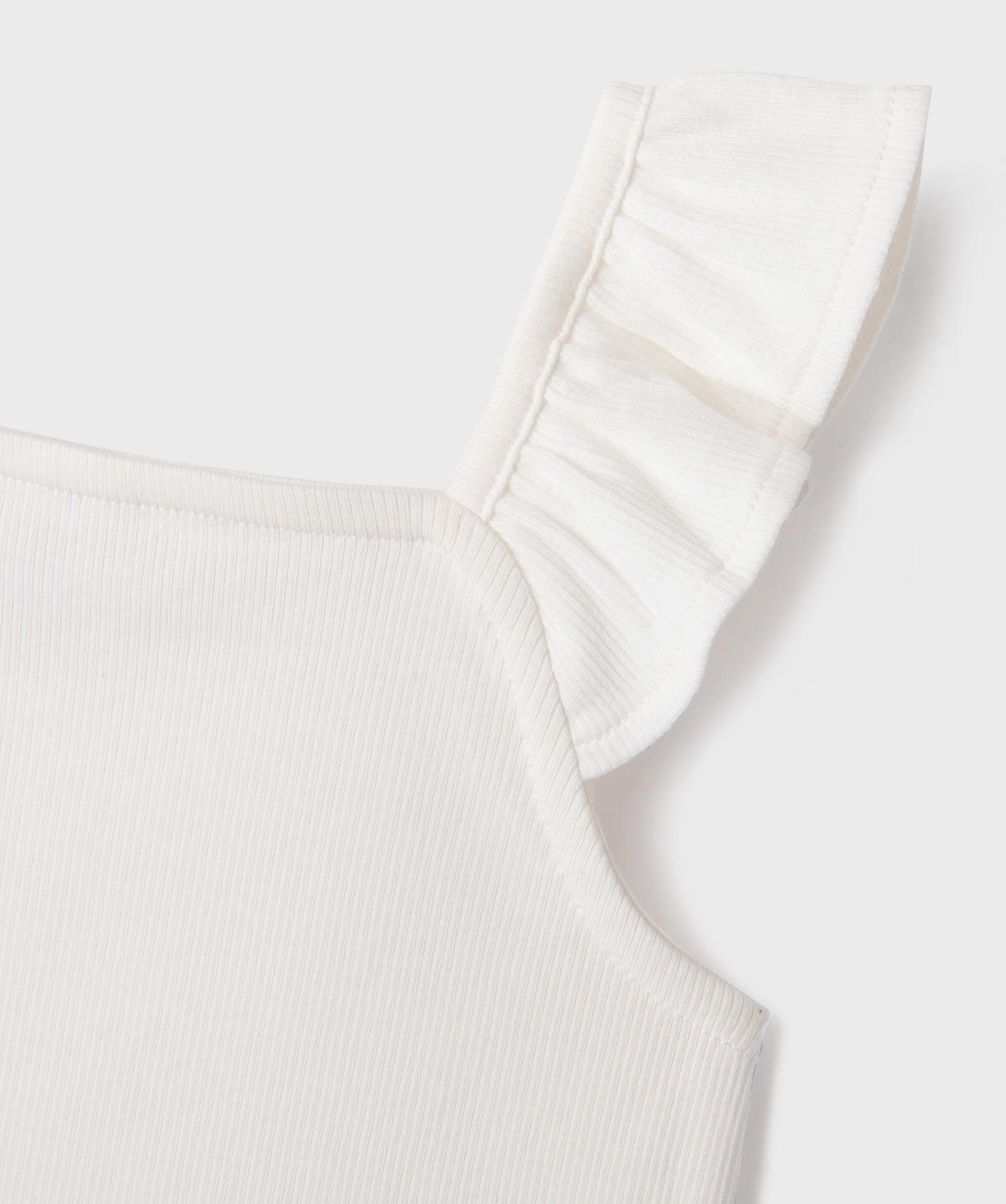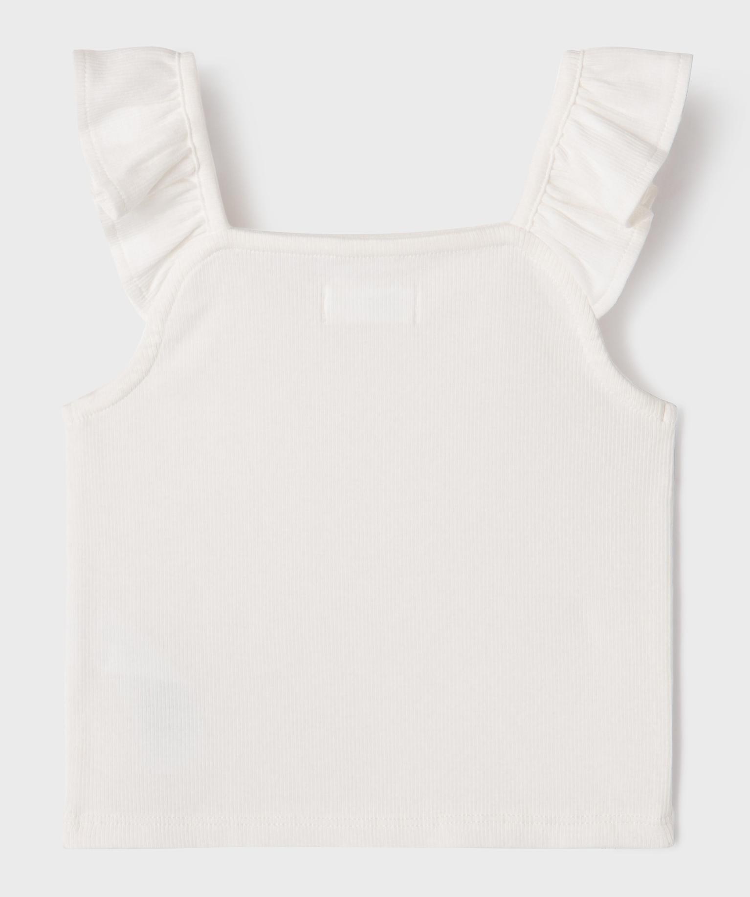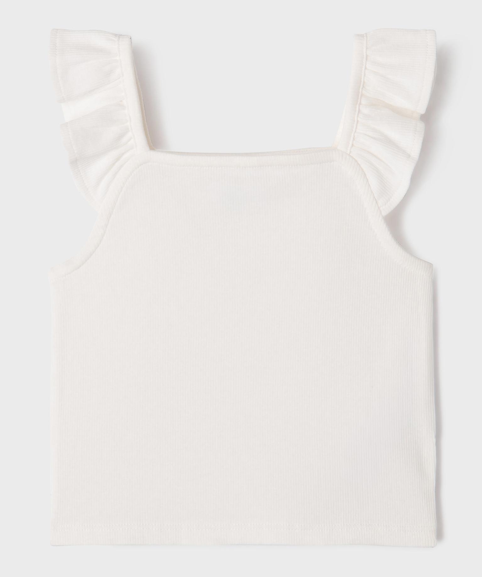 Débardeur court en maille côtelée avec bretelles à volants fille blanc