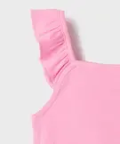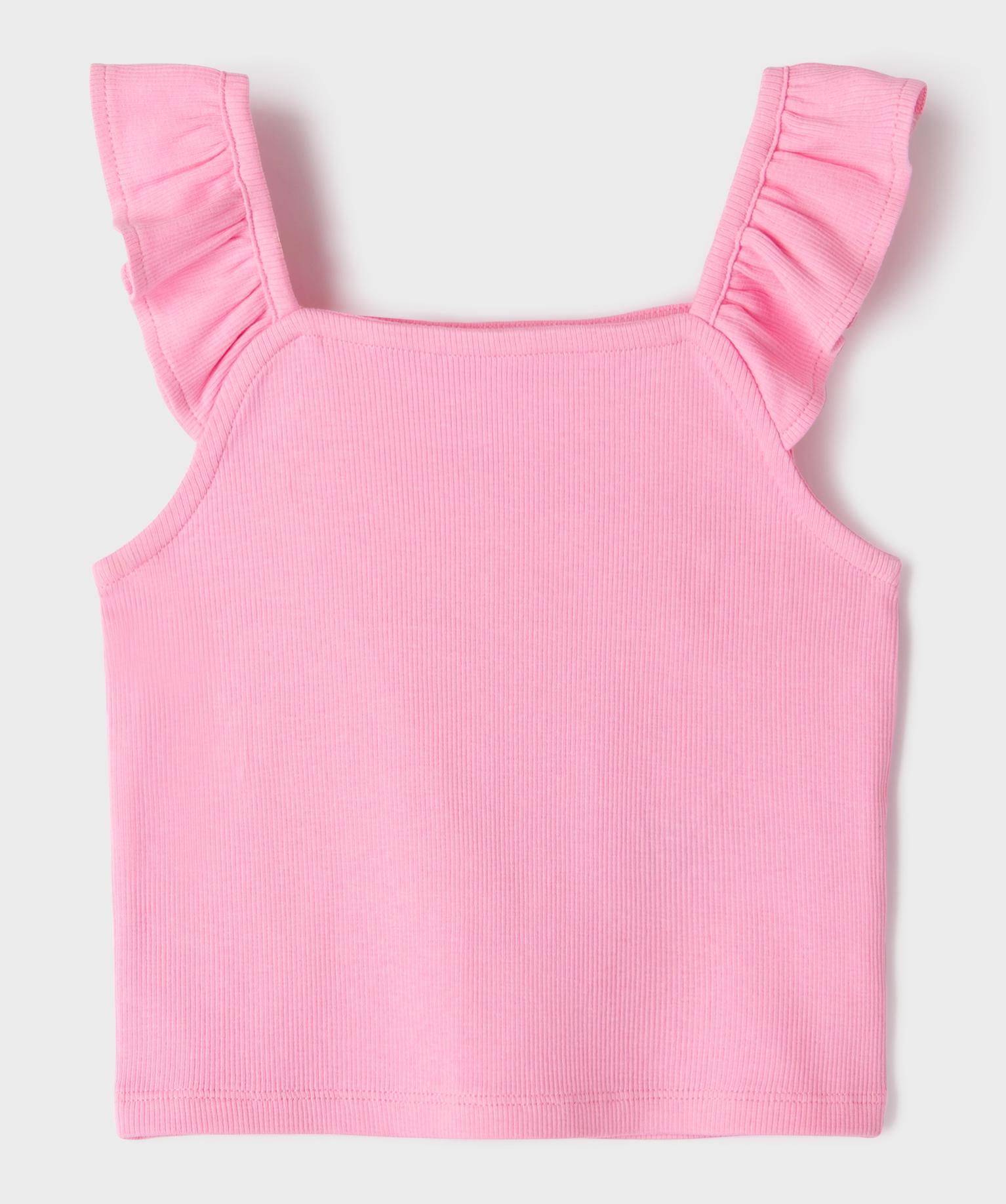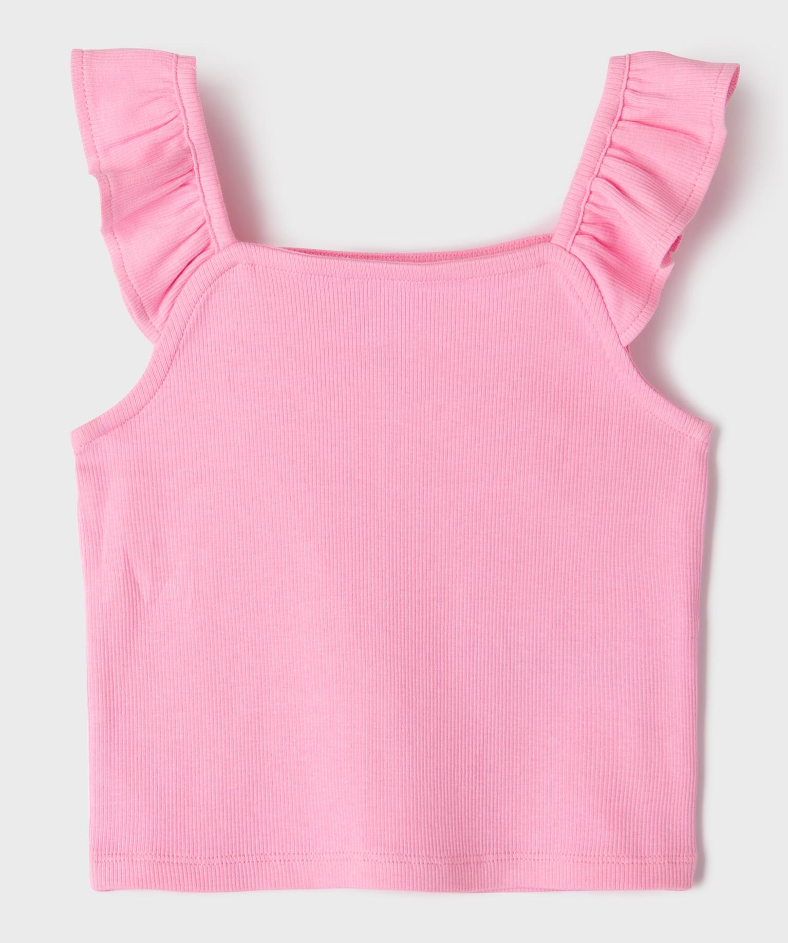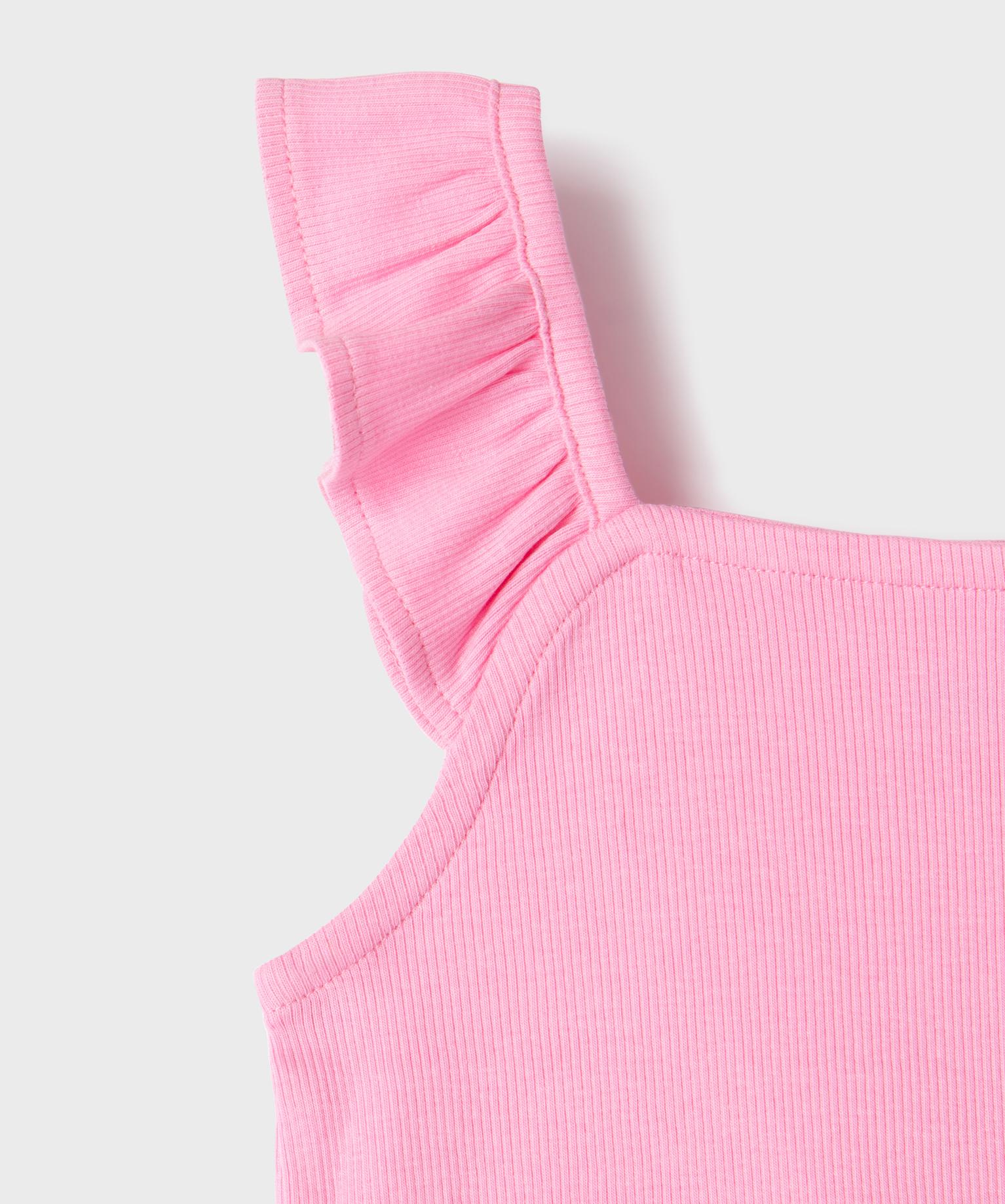 Débardeur court en maille côtelée avec bretelles à volants fille rose