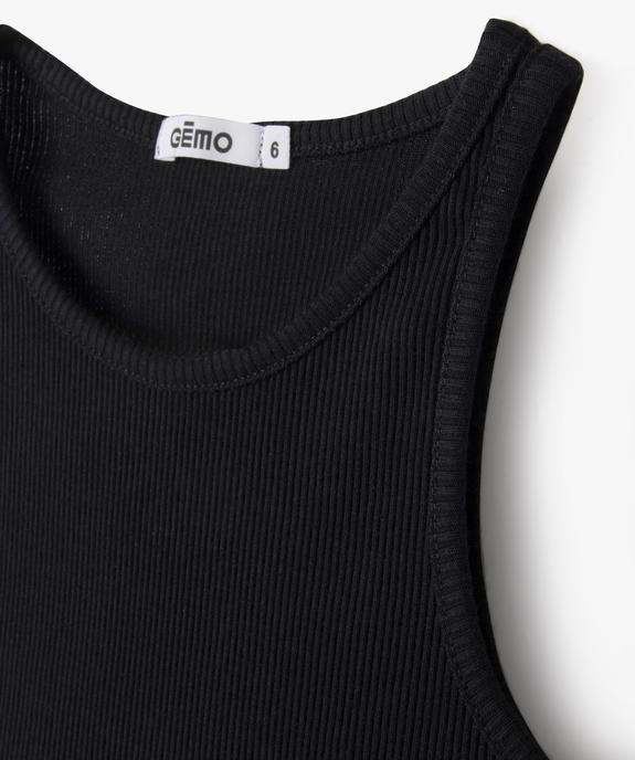 Ce joli débardeur fille séduit par sa coupe courte et ajustée qui colle à la peau. Un débardeur en maille côtelée ultra extensible doté de jolies finitions biais aux emmanchures et sur le col. Ses larges emmanchures lui confèrent une allure à la fois sportive et décontractée. Il se porte avec un short en maille et une paire de basket ou bien sous une chemise ouverte avec un jean.