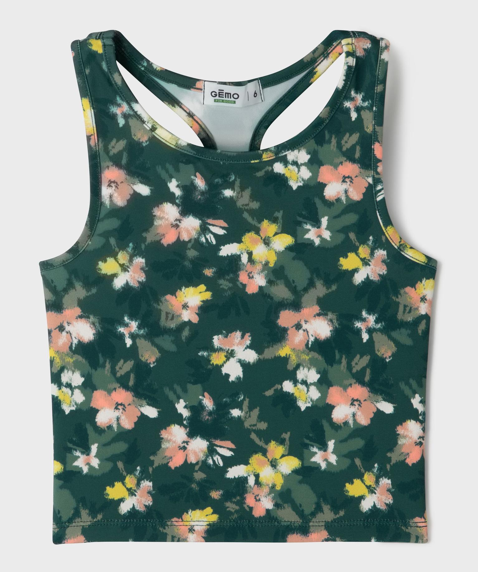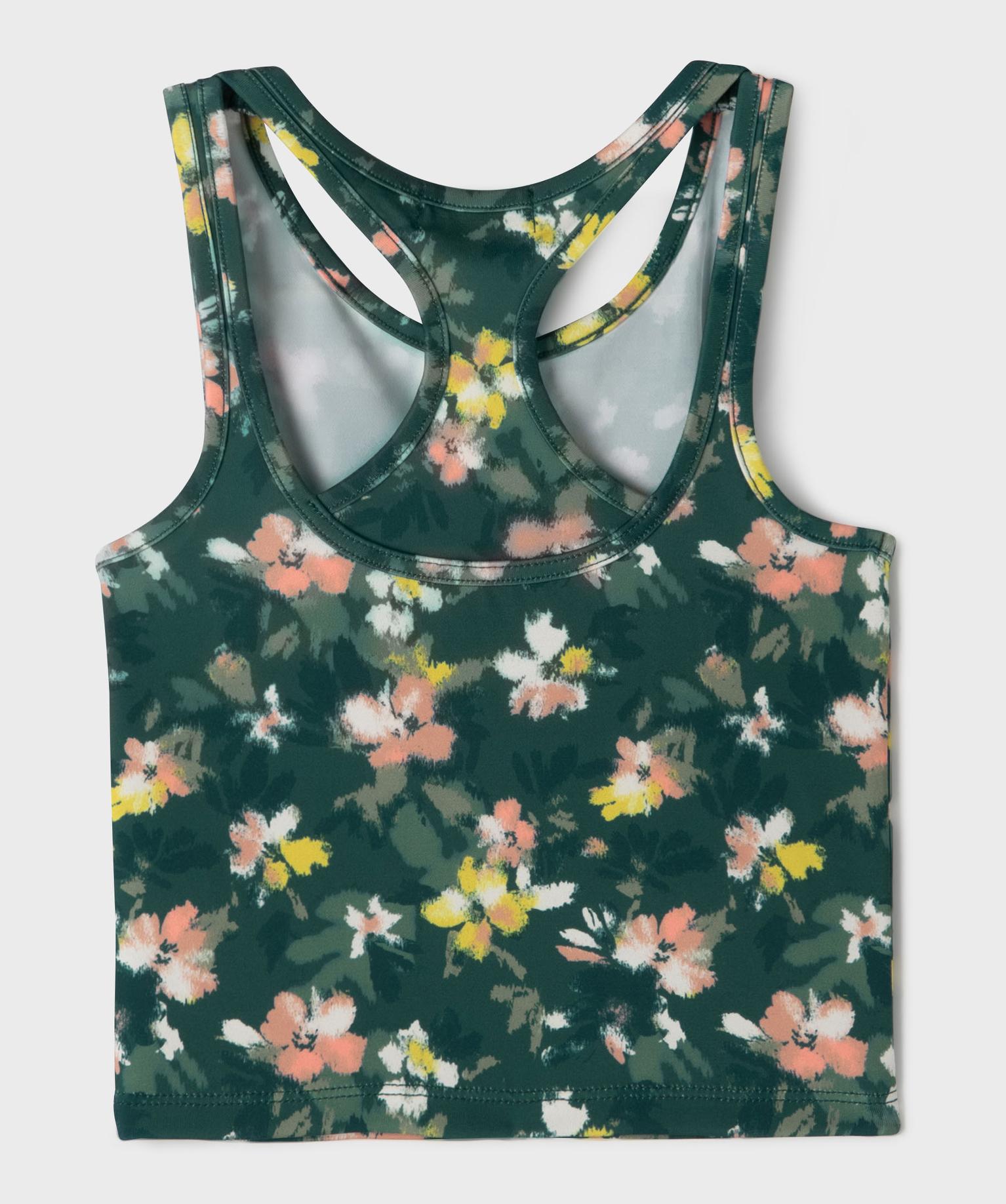 Pour les activités physiques comme pour créer un look sportswear tendance et féminin, ce débardeur s'adapte à toutes les situations grâce à sa matière technique extensible et son joli motif fleuri. Les modeuses vont adorer sa coupe courte et l'originalité de son dos : un mix de bretelles droites et dos nageur. Le débardeur se porte comme une brassière de sport fille avec le legging assorti ou comme un crop top avec un jean large et une grande chemise ouverte.