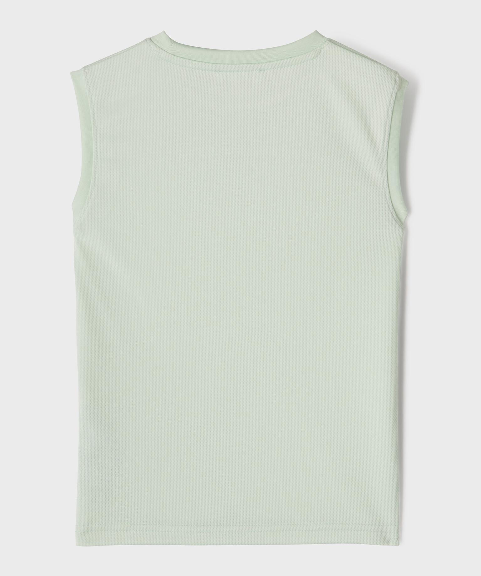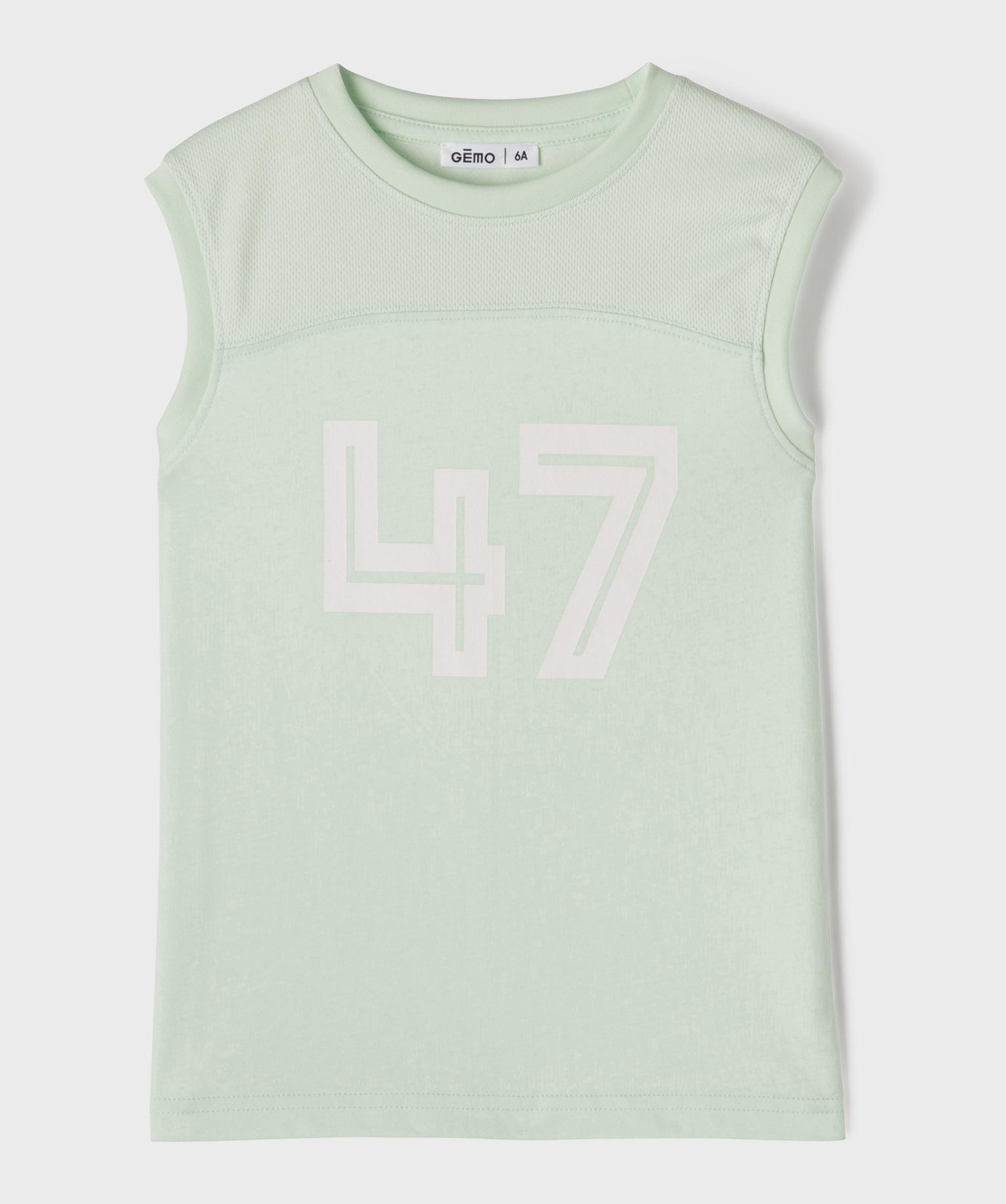 Ce tee-shirt sans manches inspiré des maillots de basket séduira les jeunes sportifs. Conçu avec un dos et un haut de buste en mesh respirant et un devant en jersey, ce tee-shirt garçon assure confort et aération. Le grand chiffre contrastant attire le regard et renforce son esprit sportif. Les finitions bord-côte au col rond et aux emmanchures apportent une belle finition. Associez-le à un short de sport ou un bermuda en molleton pour une silhouette dynamique.