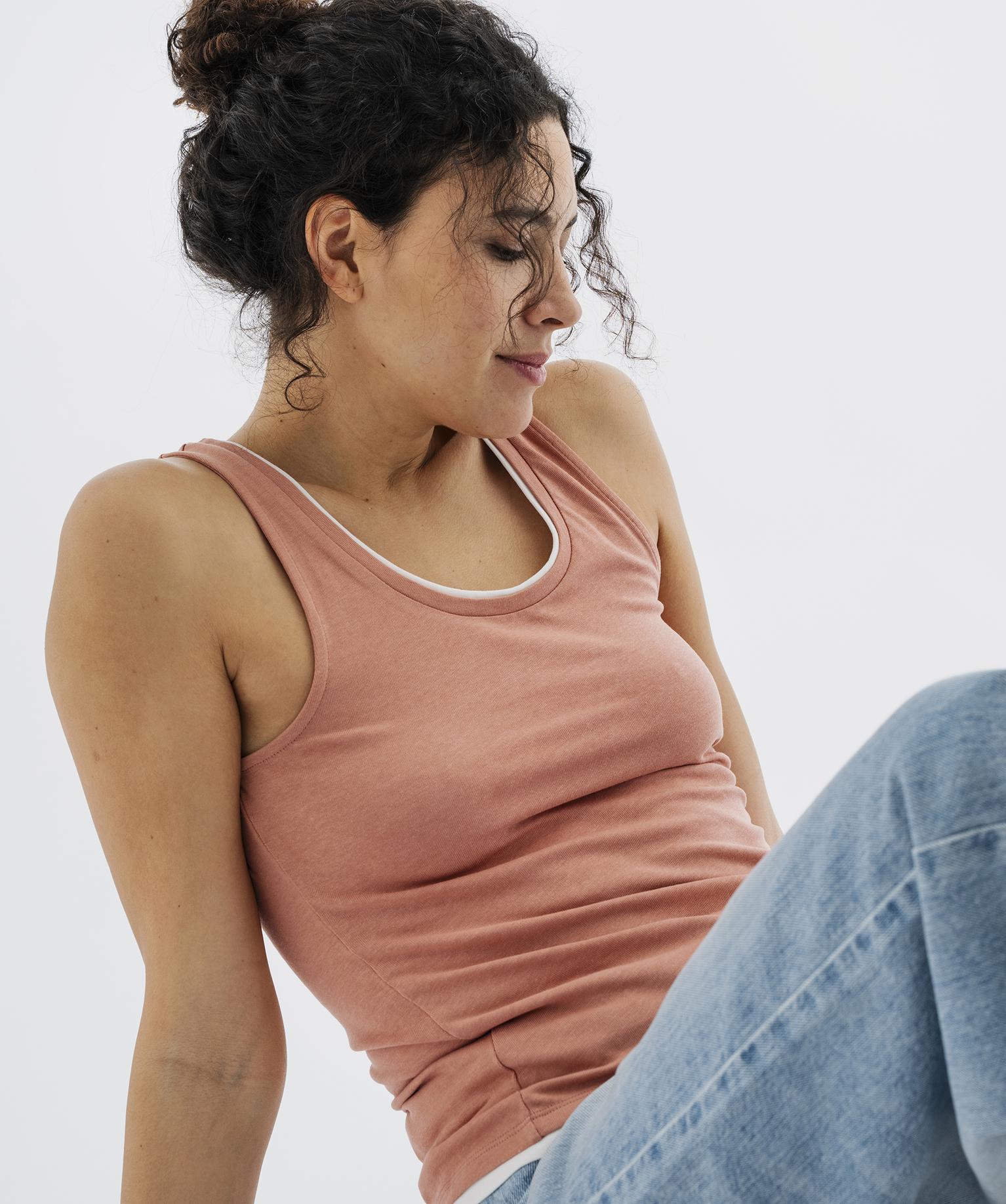 Débardeur en coton avec finitions contrastantes femme rose