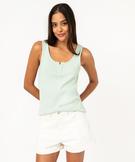 Débardeur en coton côtelé avec col fantaisie femme vert