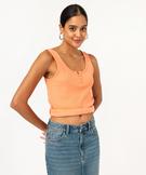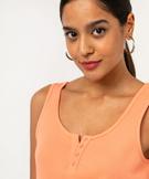 Débardeur en coton côtelé avec col fantaisie femme orange clair