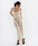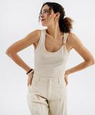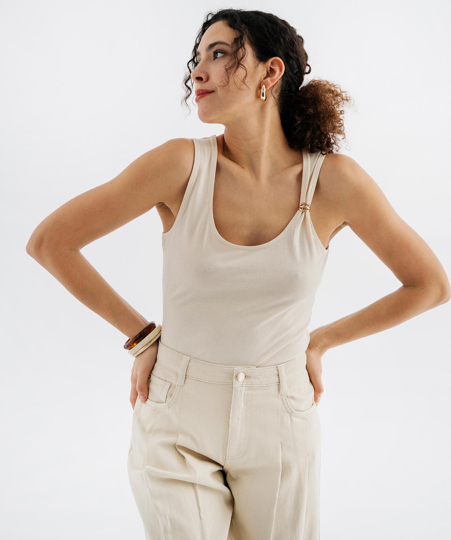 Débardeur en jersey de coton stretch à bretelle bijou femme beige clair