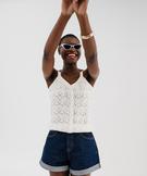 Débardeur en maille ajourée boutonné sur l’avant femme ecru