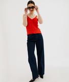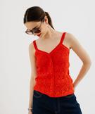 Débardeur en maille ajourée boutonné sur l’avant femme rouge