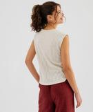 Ce débardeur femme joue la carte de l’élégance avec sa maille à larges cotes, ajourée et pailletée. Confectionné avec une touche de viscose, le tee-shirt sans manches offre une souplesse et un tombé impeccables. Son col rond et sa coupe droite en font une pièce chic et féminine. Un top parfait à associer avec une jupe ou un pantalon élégant.