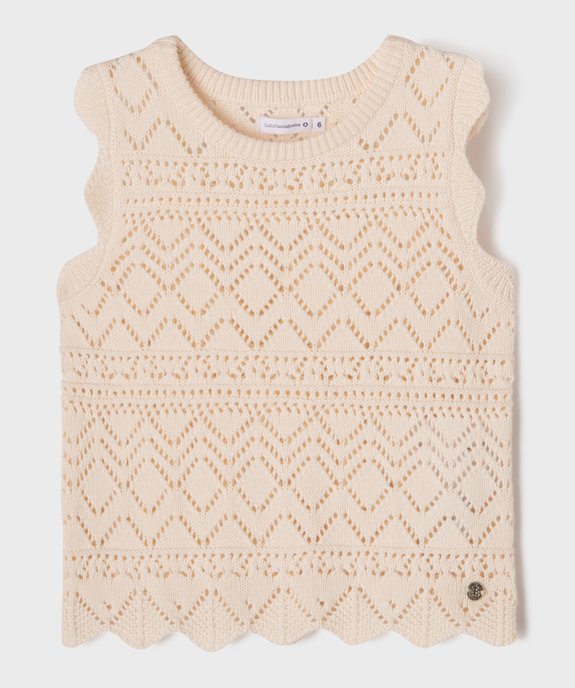 Débardeur en maille ajourée fille - LuluCastagnette blanc chine