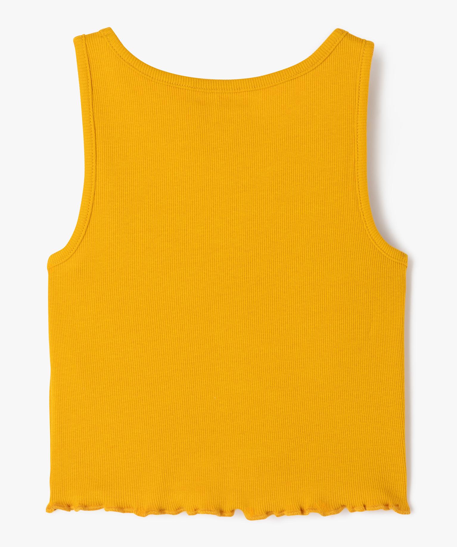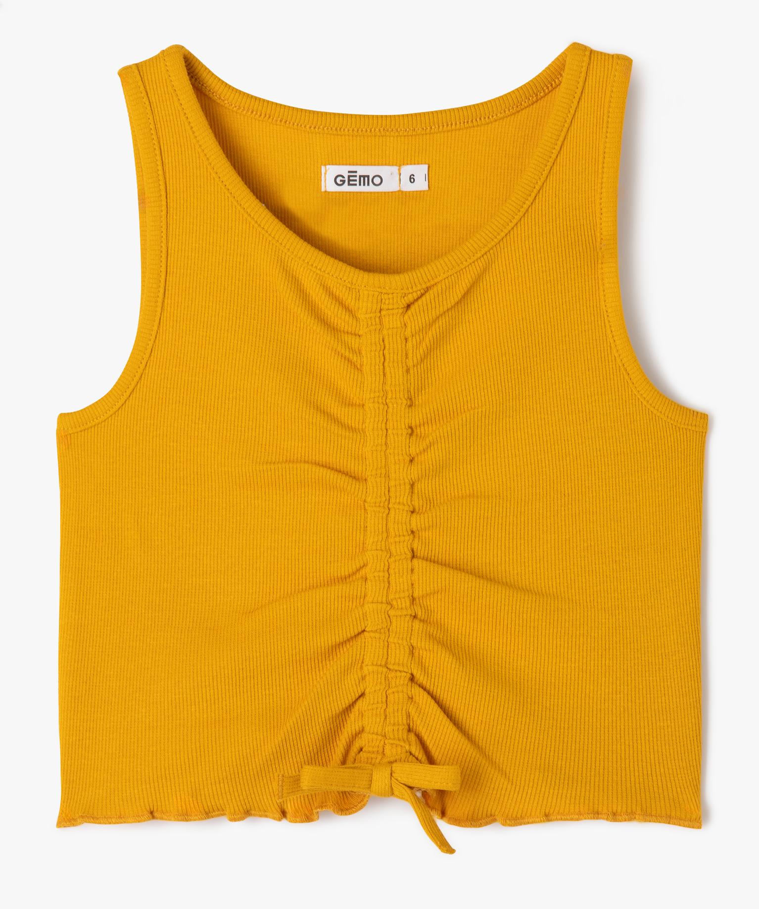 Ce débardeur en maille côtelée va devenir le chouchou des jeunes fashionistas cet été ! Il est vrai qu’avec ses fronces sur l’avant, son petit noeud et ses finitions fantaisie dans le bas, il est craquant ! Ce joli débardeur fille possède un joli col rond souligné par des finitions biais, également présentes sur les emmanchures. Ce débardeur à fronces se portera aussi bien avec une jupe qu’avec un pantalon pour composer des looks d’été très girly !