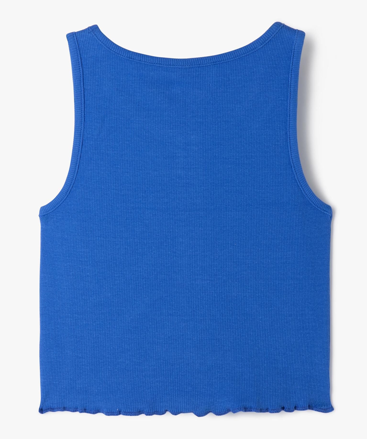 Ce débardeur en maille côtelée va devenir le chouchou des jeunes fashionistas cet été ! Il est vrai qu’avec ses fronces sur l’avant, son petit noeud et ses finitions fantaisie dans le bas, il est craquant ! Ce joli débardeur fille possède un joli col rond souligné par des finitions biais, également présentes sur les emmanchures. Ce débardeur à fronces se portera aussi bien avec une jupe qu’avec un pantalon pour composer des looks d’été très girly !