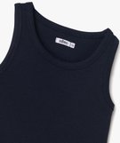 Ce débardeur court fait partie des pièces indispensables du dressing des filles. Confectionné en coton côtelé, il offre un maximum de confort et un look casual. Ce débardeur fille possède un col rond et des emmanchures avec finitions biais qui lui confèrent une allure sportive. Il se porte seul avec tous les bas du dressing ou sous une chemise ouverte. Un débardeur côtelé à collectionner dans tous les coloris.
