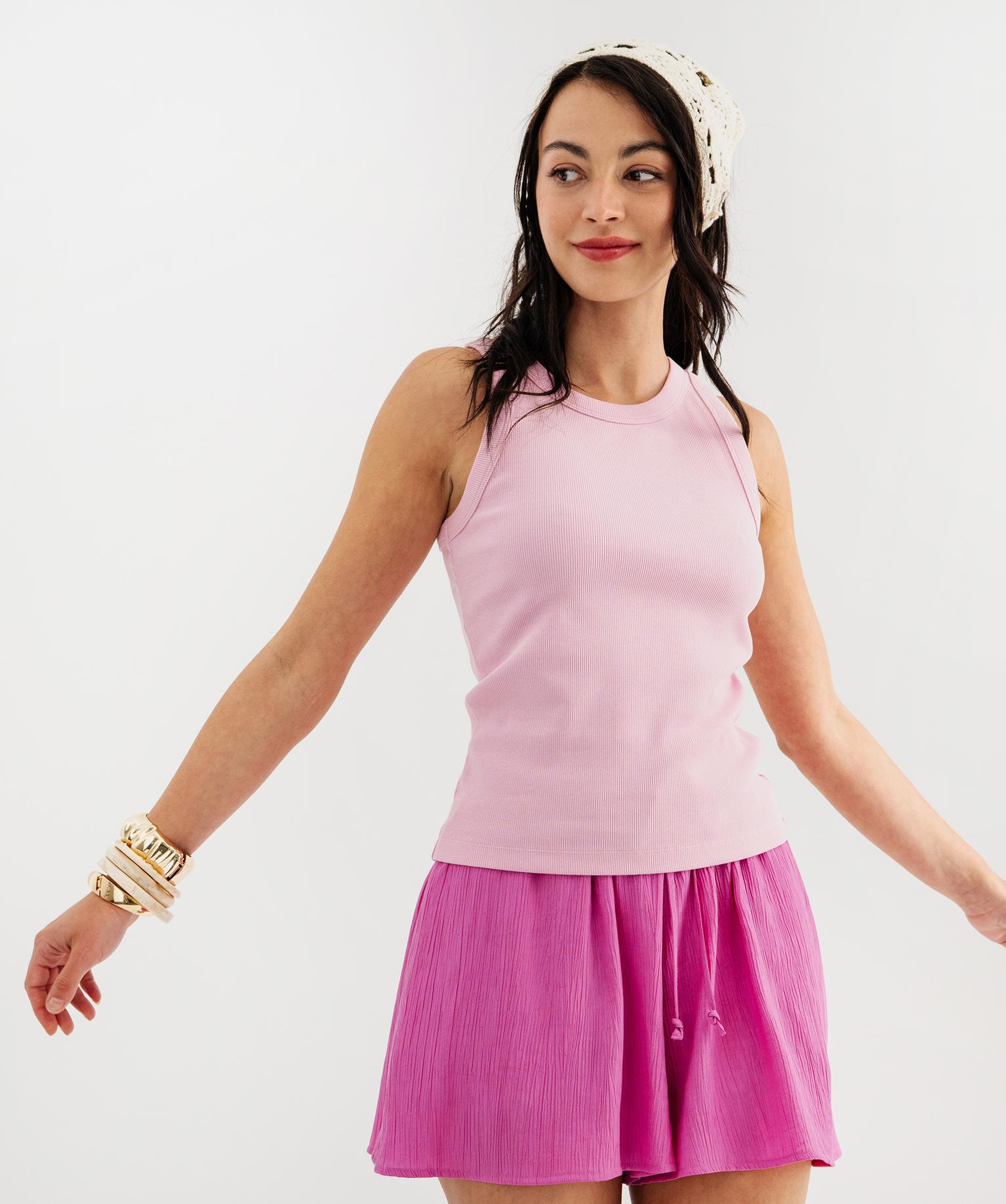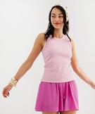 Débardeur en maille côtelée emmanchures américaines femme rose